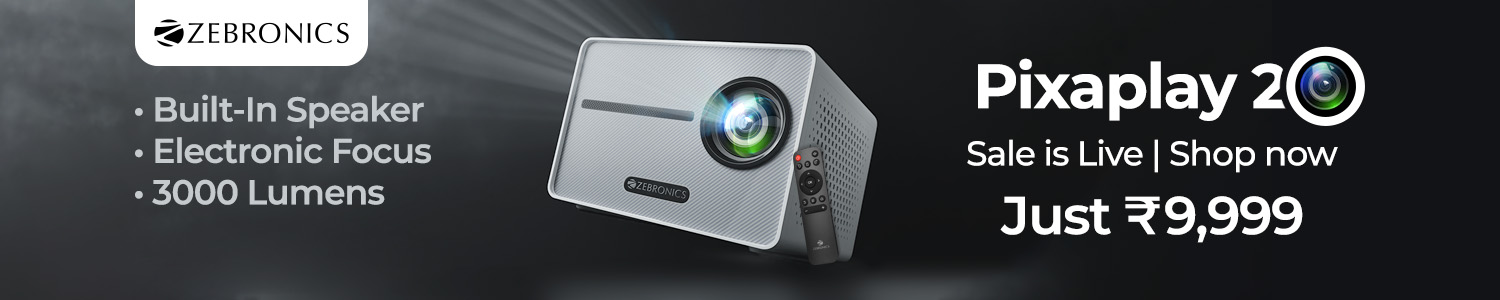 Zebronics PIXAPLAY 20 LED Projector with FHD 1080p, HDMI, USBx2, Aux Out, Bluetooth v5.1, Upto 431 cm Screen Size, Built-in-Speaker,...